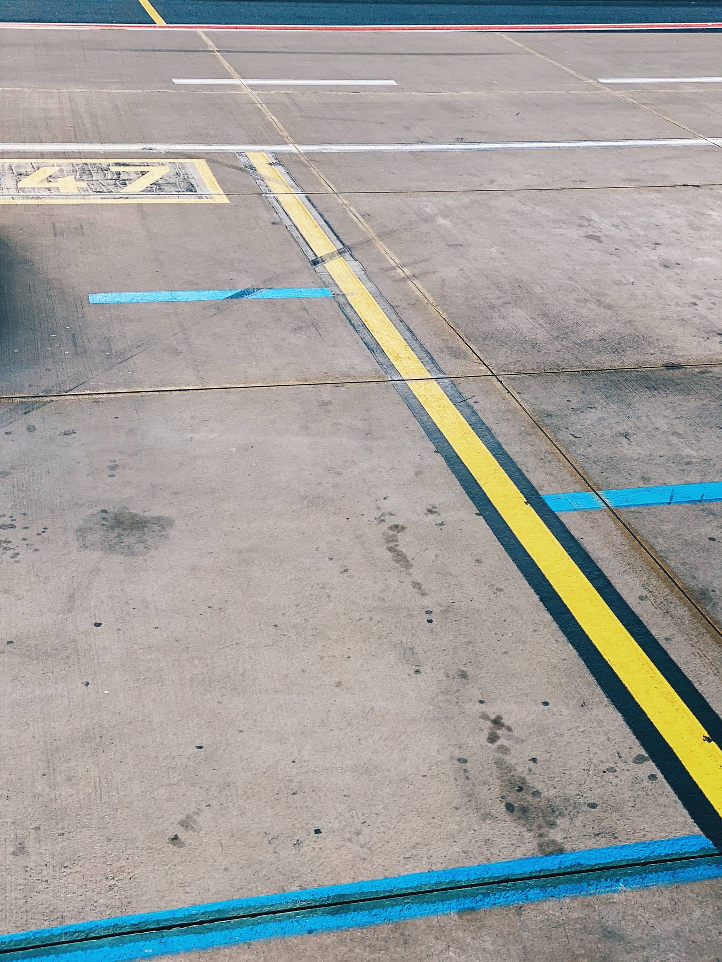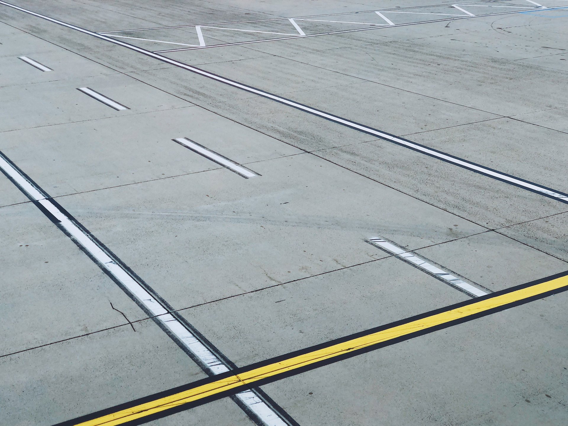 Doch wenn man sie aus ihrem funktionalen Kontext löst und genauer betrachtet, erreichen diese Markierungen ihren eigenen terminalen Punkt: Sie lösen sich auf in reine Abstraktion. Was von oben einheitlich erscheint, zerfällt in individuelle Gesten: verschiedene Gelbtöne, variierende Linienstärken, verwitterte Oberflächen, improvisierte Ausbesserungen. Die universelle Sprache der Flugsicherheit wird überraschend persönlich und trägt die Spuren verschiedener Hände, Klimazonen und Entscheidungen.